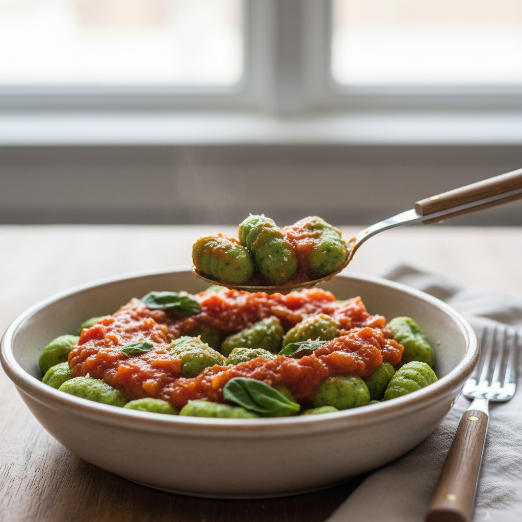 Ñoquis de ricotta y espinacas con salsa de tomate