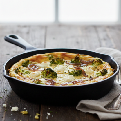 Frittata de brócoli, cebolla y queso cabra
