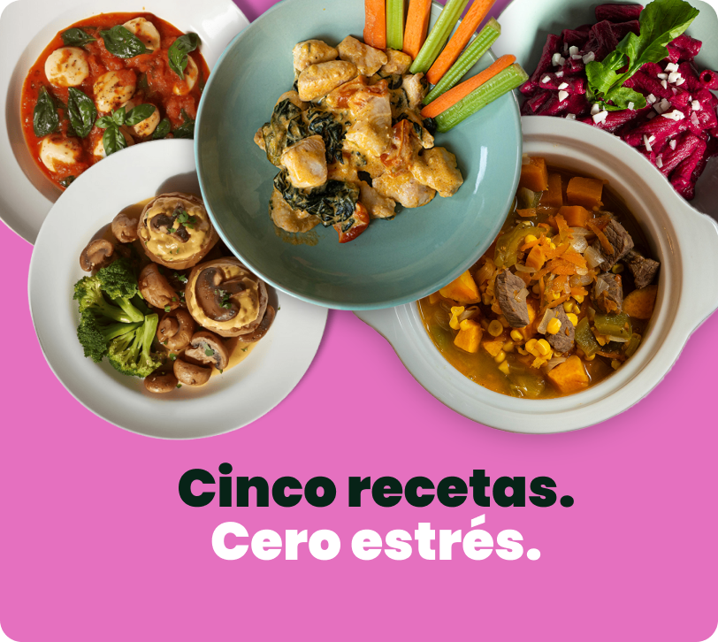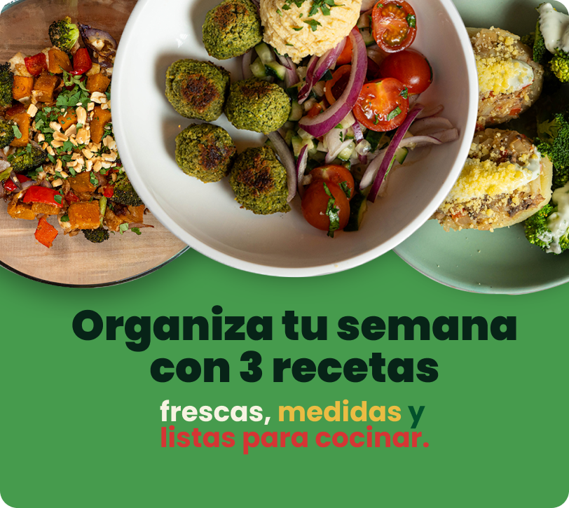 El equilibrio perfecto entre variedad y practicidad Con el Kit de 3 Recetas elige 3 platos de nuestro menú semanal, con ingredientes frescos, medidos y listos para cocinar en casa. Es la opción ideal para quienes buscan organizar la semana sin complicaciones, disfrutar de sabores diferentes y ahorrar tiempo en compras y planificación. Recibes todo lo que necesitas en tu puerta: ingredientes de calidad, recetas detalladas paso a paso y la tranquilidad de saber que en 35 minutos promedio tendrás una comida casera, nutritiva y sorprendente para dos personas.